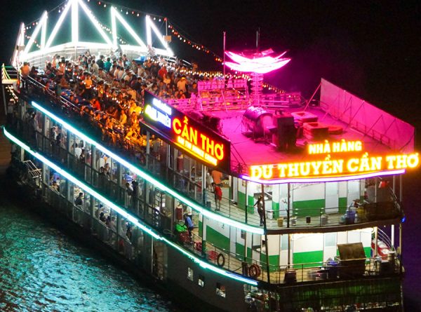 Evening: Guests will enjoy dinner on a cruise ship on the Can Tho River, listening to Southern Vietnamese folk music and savoring local specialties such as grilled field mouse with chili and salt, steamed prawns with beer, grilled snakehead fish, grilled snails with pepper, and deep-fried elephant ear fish…
