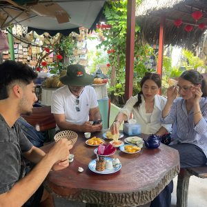• Learn how to make a traditional local food – “banana cake” in Mr. Ut’s garden who has three generations of making this type of cake